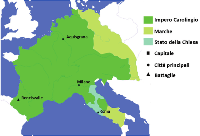Il loro potere durò fin quando un'altra popolazione di stirpe barbarica proveniente dal basso Reno, i Franchi guidati dal loro re Carlo, convertito al cristianesimo, sconfisse i Longobardi nel 774 e creò un unico grande e potente stato.